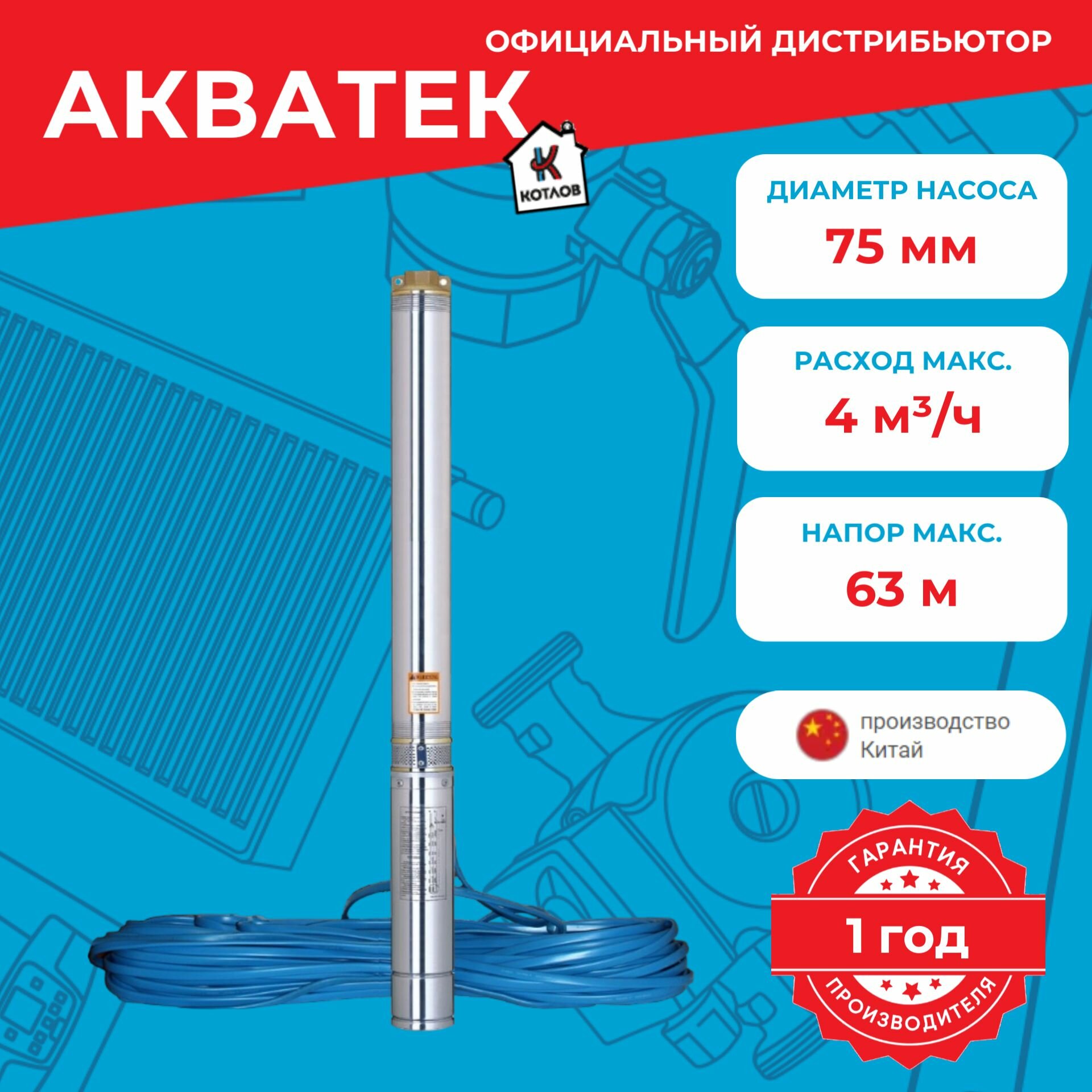 Насос скважинный Hmax= 63м Qmax=3,5м3/ч кабель 30м Акватек SP 3" 3-60 интересное:
