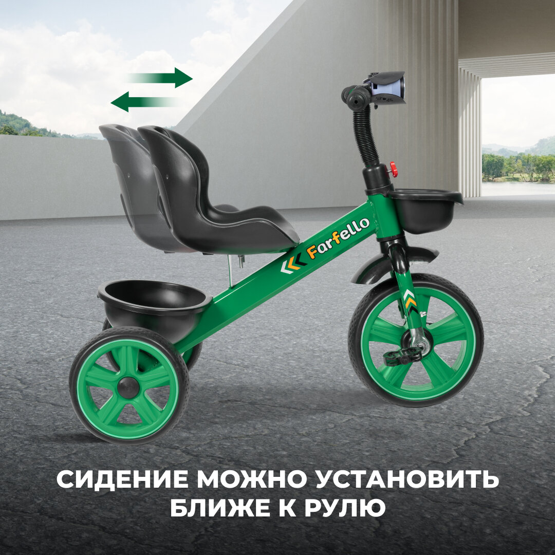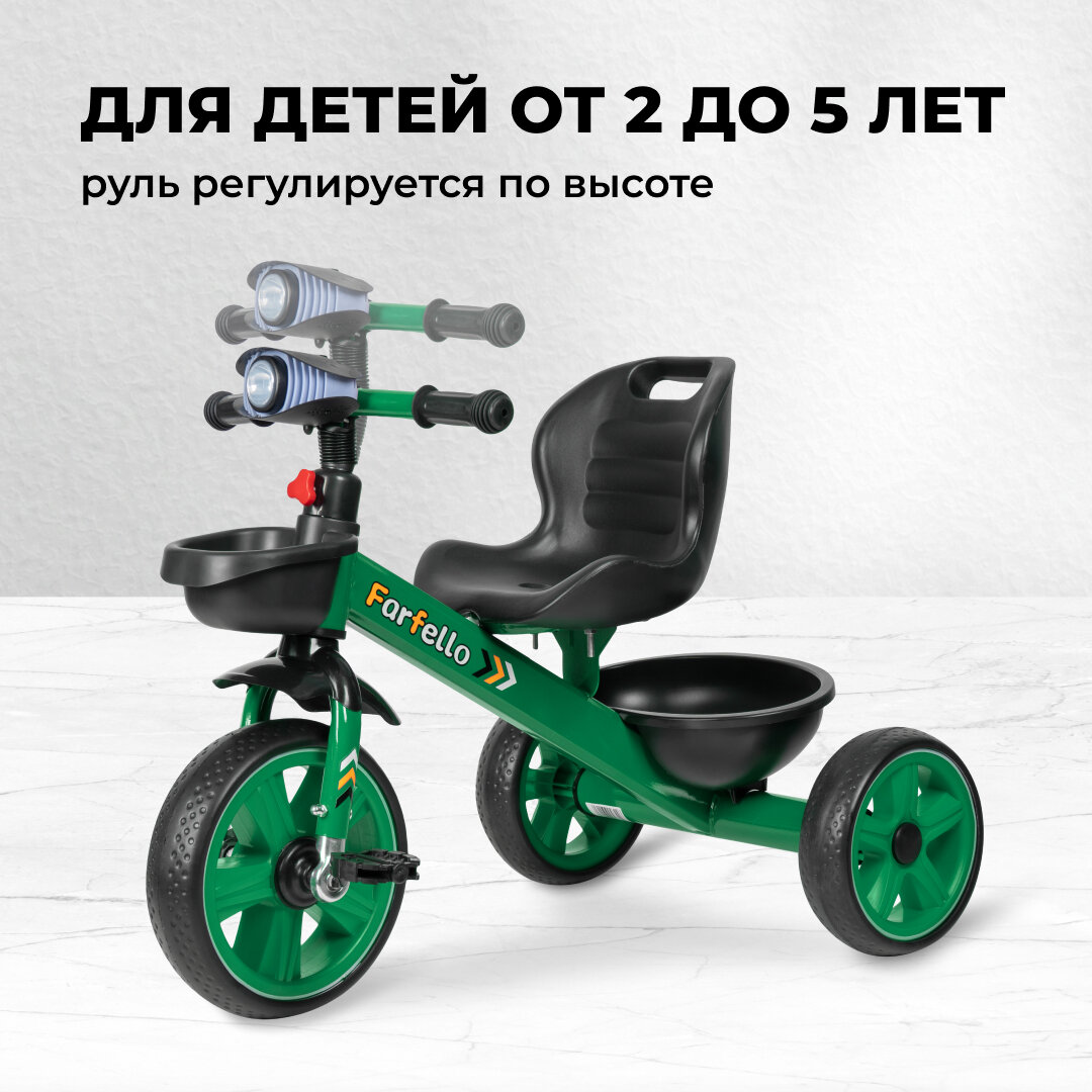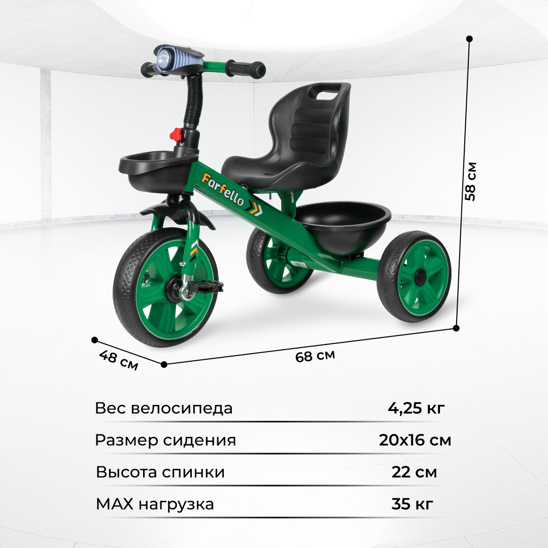 Купить Трехколесный велосипед для детей Farfello 207 / корзина для игрушек / свет и музыка / цвет зеленый