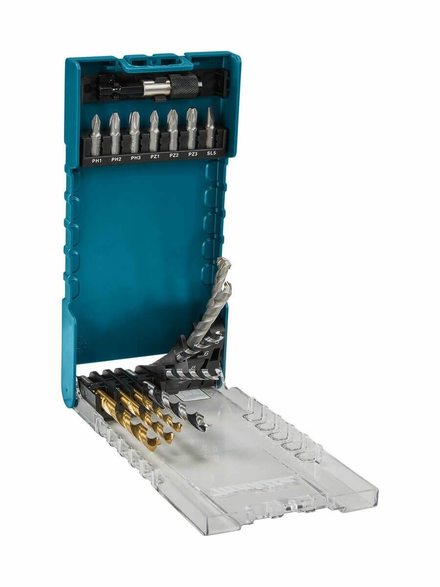 Набор сверл и бит 17 шт. (биты 25 мм 7 шт.; битодержатель; дерево/металл/бетон -5,6,8 мм) Makita D-74887