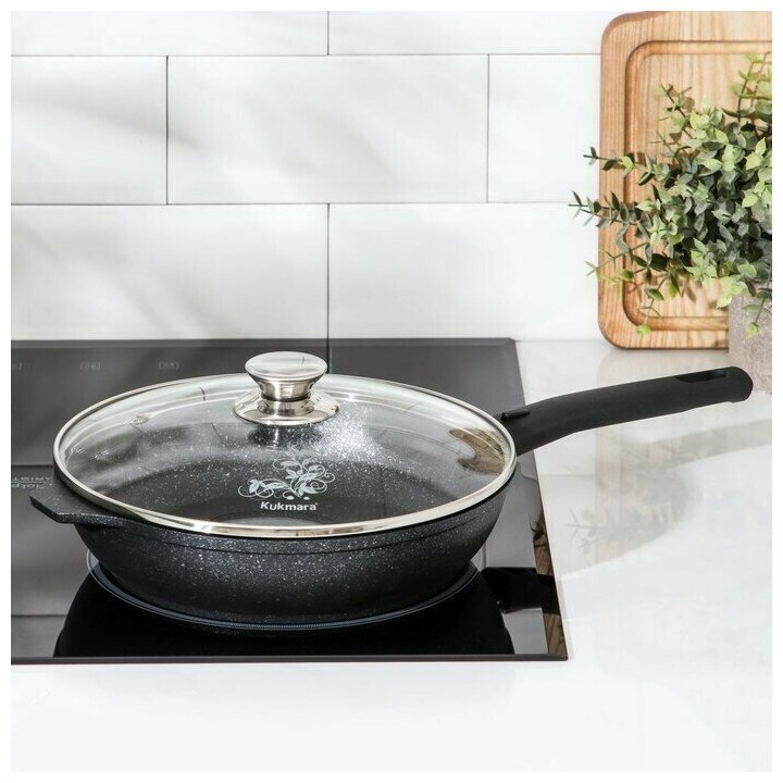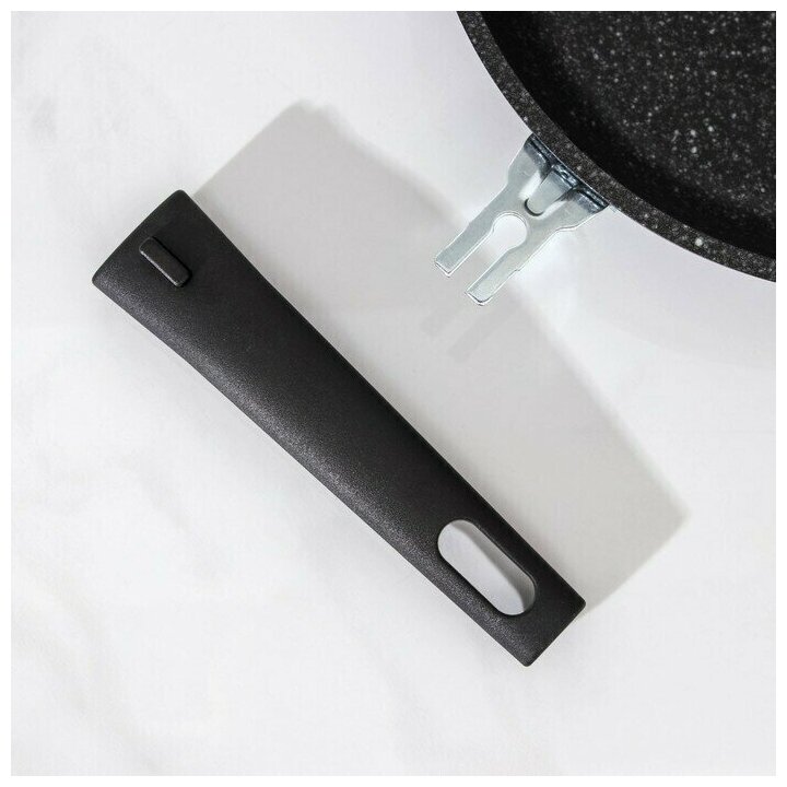Сковорода d=24 см съёмная ручка стеклянная крышка антипригарное покрытие цвет тёмный мрамор интересное: