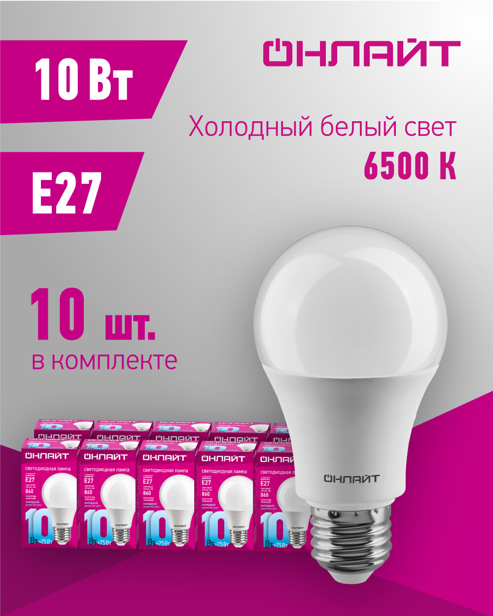 Лампа светодиодная онлайт 71 650, 10 Вт, груша, Е27, 4000К дневной свет, упаковка 10 шт.