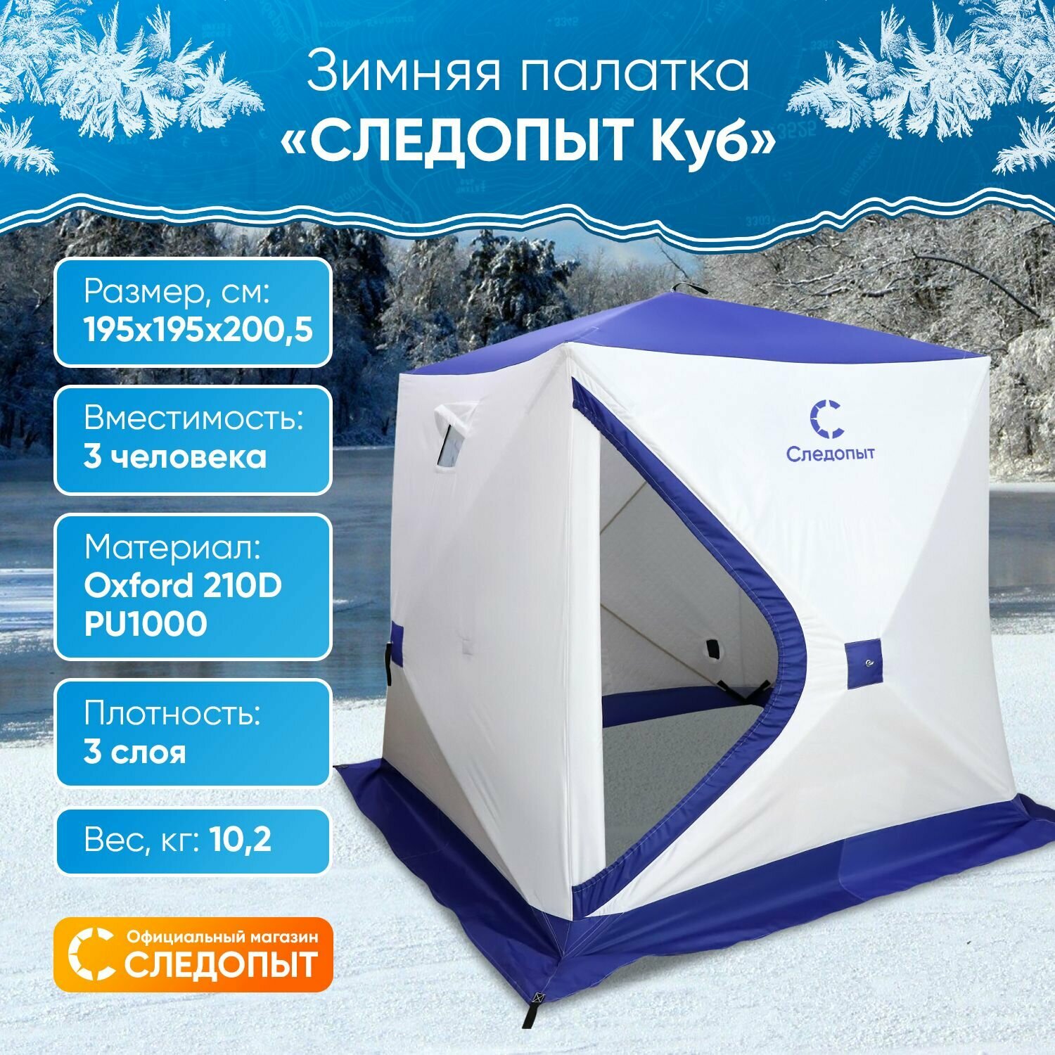 Палатка зимняя куб следопыт, 3-х местная, 3 слоя, цвет бело-синий 9316784 интересное: