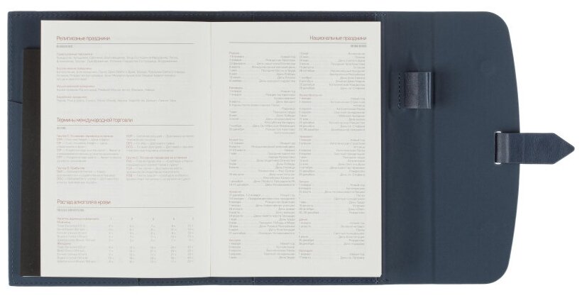 | Особенности | держатель для ручки / поля / прошивка по периметру обложки / справочная информация |