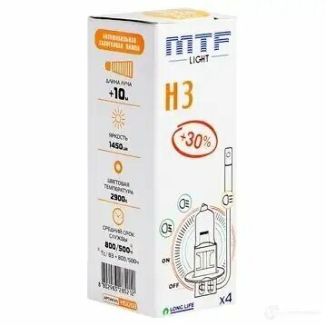 Лампа галогенная MTFLIGHT LONG LIFE x4 12V H3 55W HS1203
