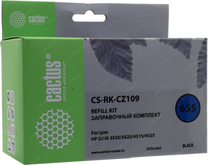 Cactus CS-RK-CZ109 чернила (HP 655) черный 60 мл (совместимый)