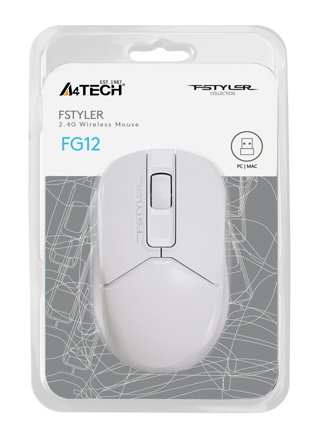 Мышь A4Tech Fstyler FG12, белый, оптическая (1200dpi), беспроводная, USB (3 кнопки)