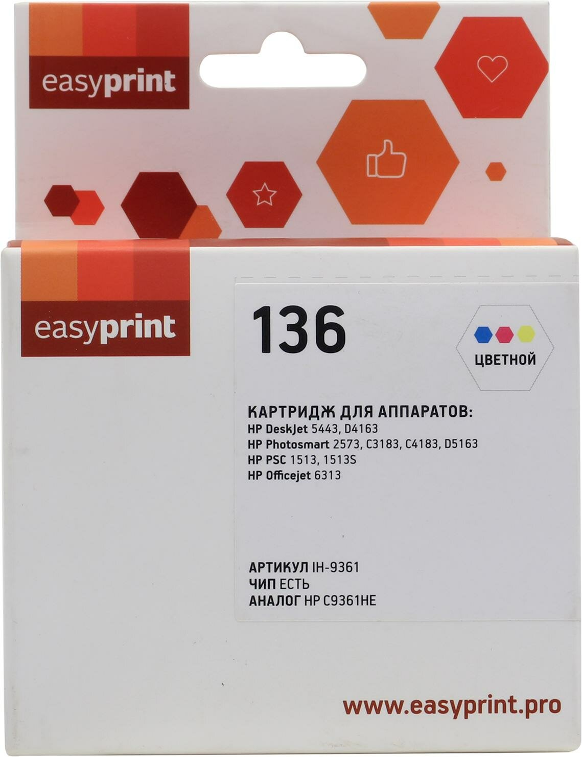 Купить Картридж EasyPrint IH-9361 №136 для HP Deskjet 5443/D4163/Photosmart C3183/C4183/D5163, цветной