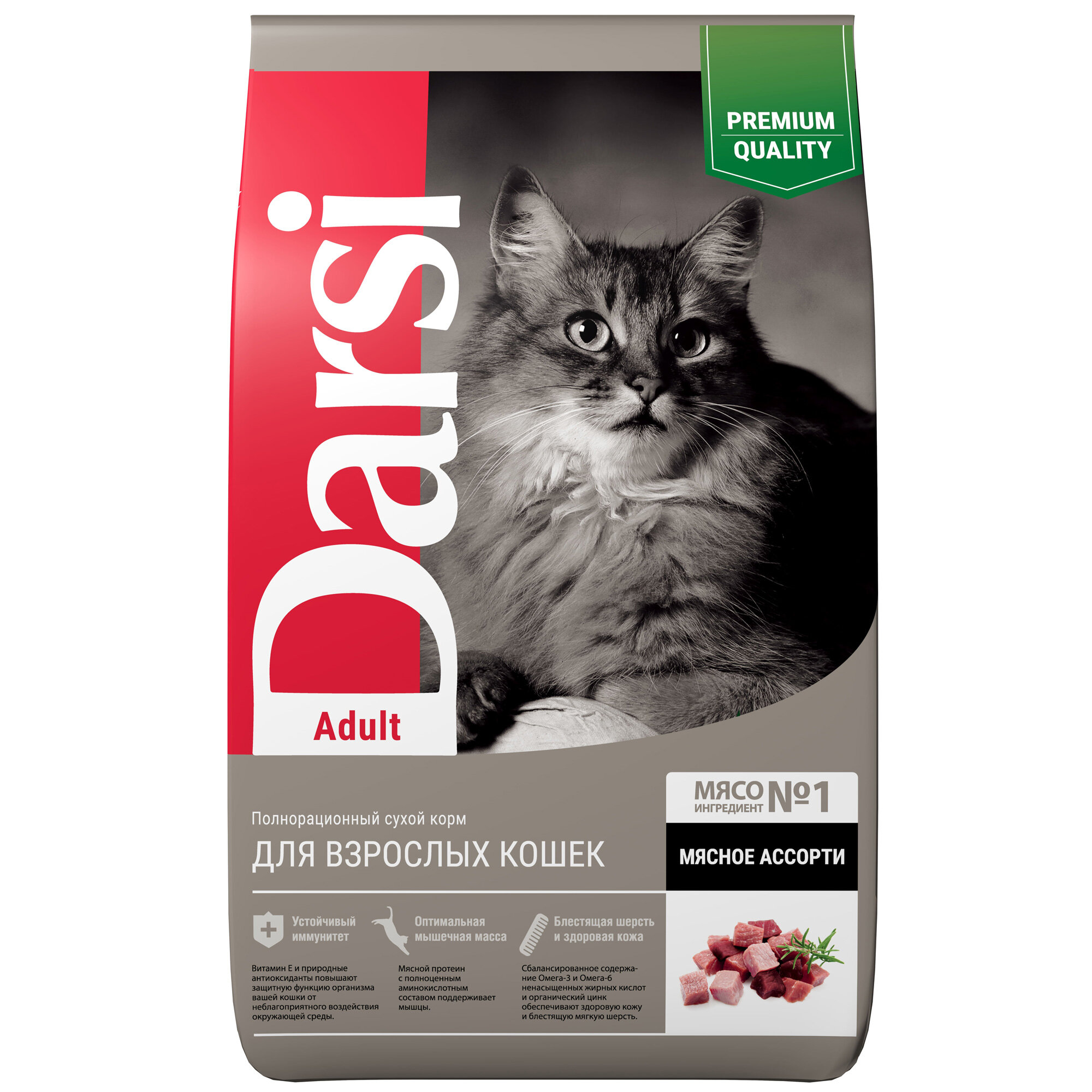 Сухой полнорационный корм для кошек Darsi Adult Мясное ассорти, 1,8 кг