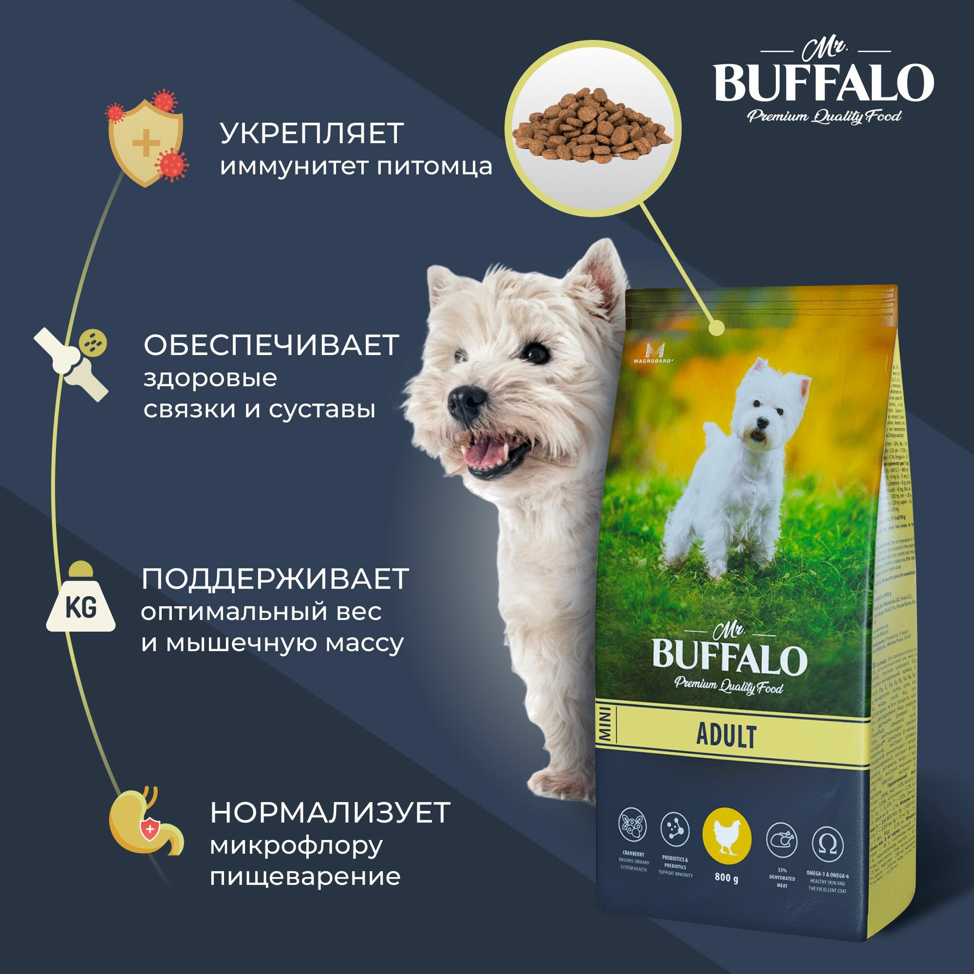 Купить Mr.Buffalo Adult Mini Сухой корм с курицей для собак мелких пород , 800 г