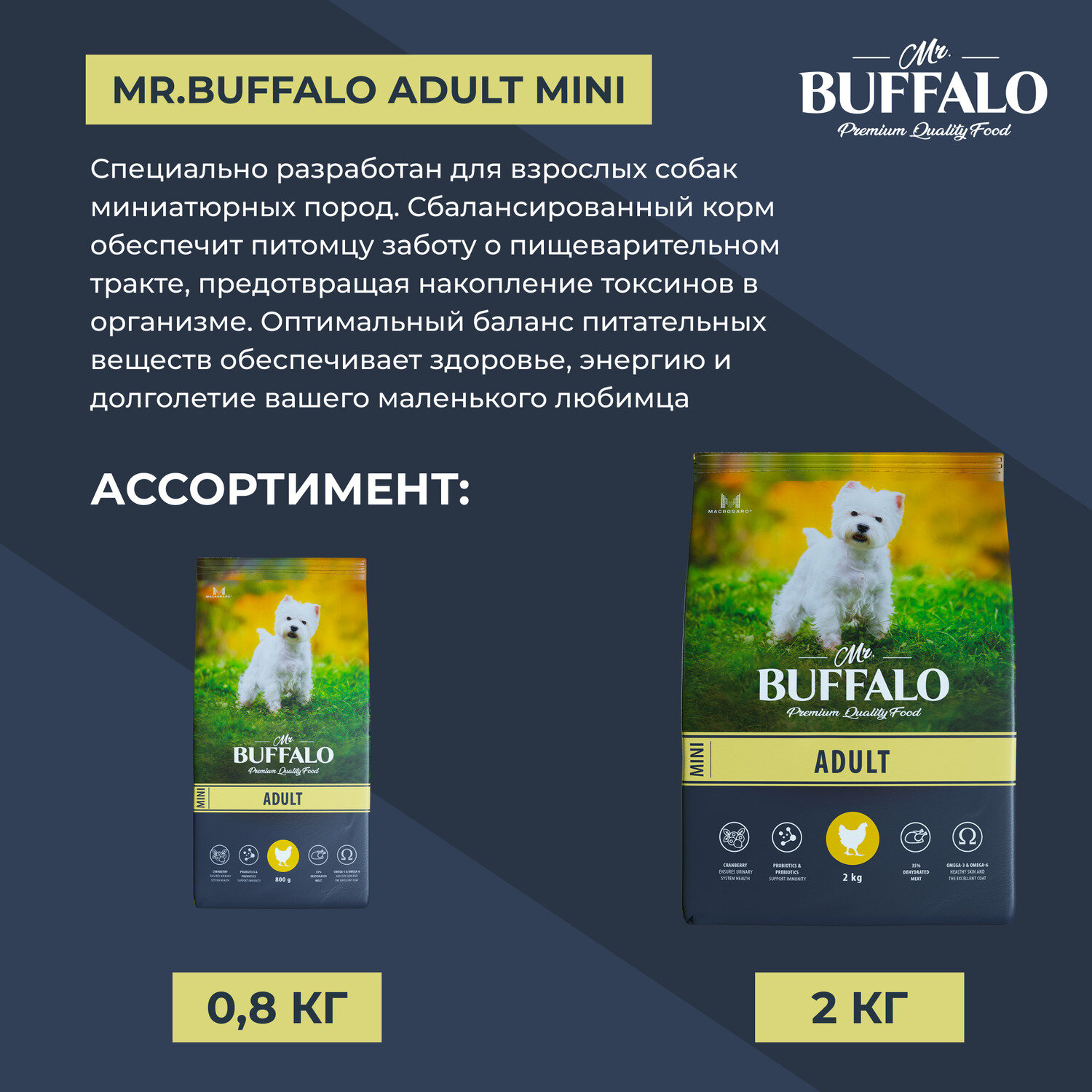 Mr.Buffalo Adult mini сухой корм для взрослых собак миниатюрных пород Курица, 2 кг.