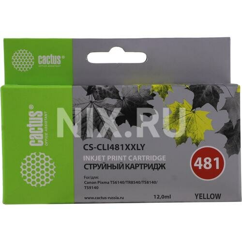 Картридж струйный Cactus Cs-cli481xxly желтый (12мл) для Canon Pixma TR7540/TR8540/TS6140/TS8140 Cs- .
