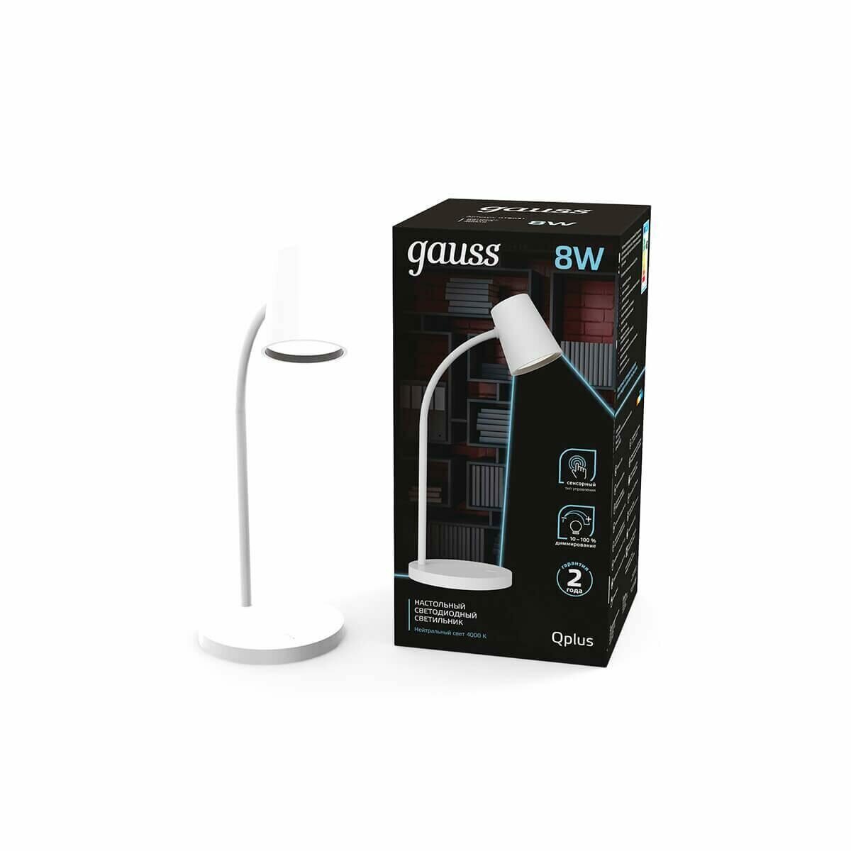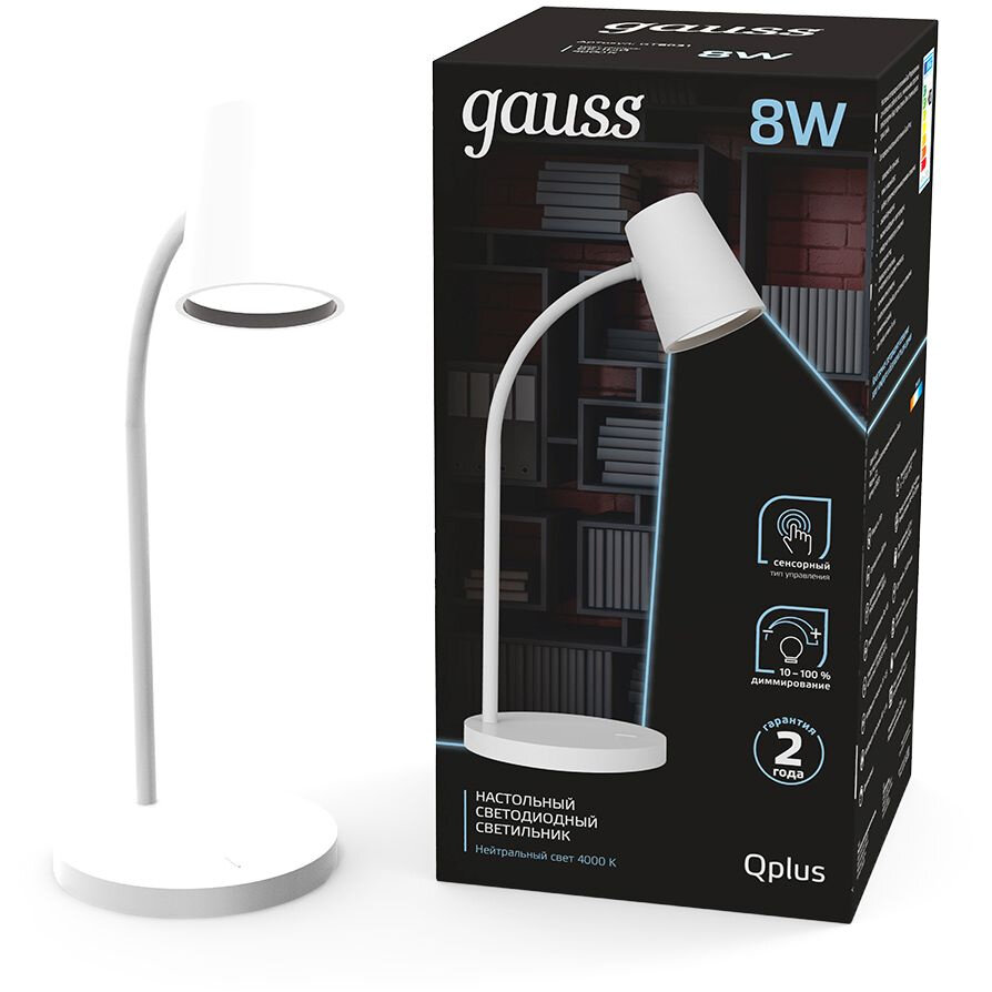 Светильник настольный Gauss Qplus модель GTL603 8W 600lm 4000K 170-265V белый диммируемый LED 1/8