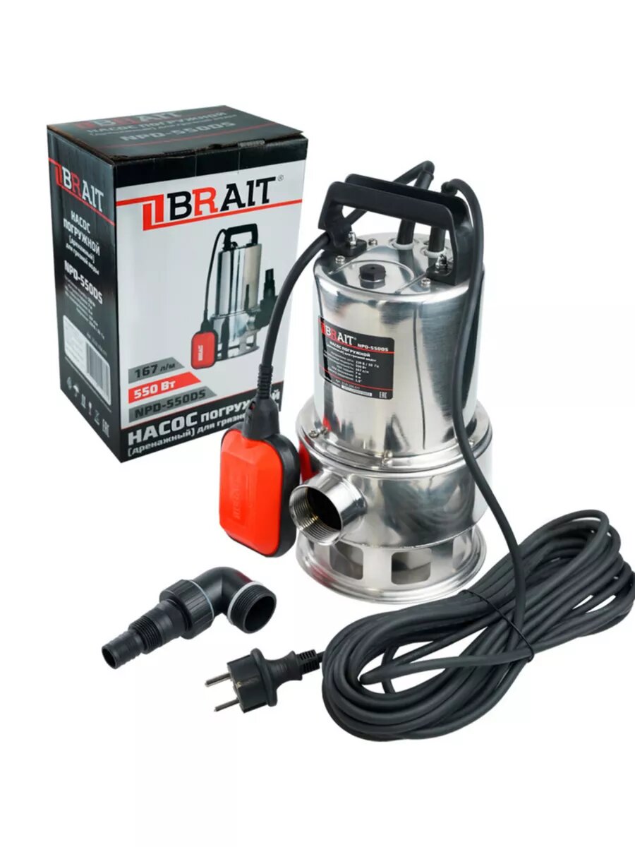 Купить Насос дренажный BRAIT NPD- 550DS грязная вода (550Вт,167л/мин,погр.7м,напор 7м,тв.част.35мм,нерж) 5.9кг