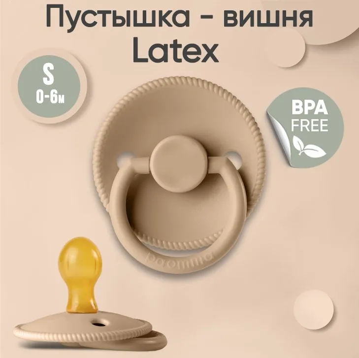 Пустышка Paomma с соской из натурального латекса, S (6-18 мес), Vanilla