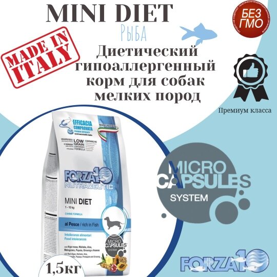 Купить FORZA10 DOG MINI DIET монобелковый для взрослых собак маленьких пород при аллергии с рыбой (1,5 кг)