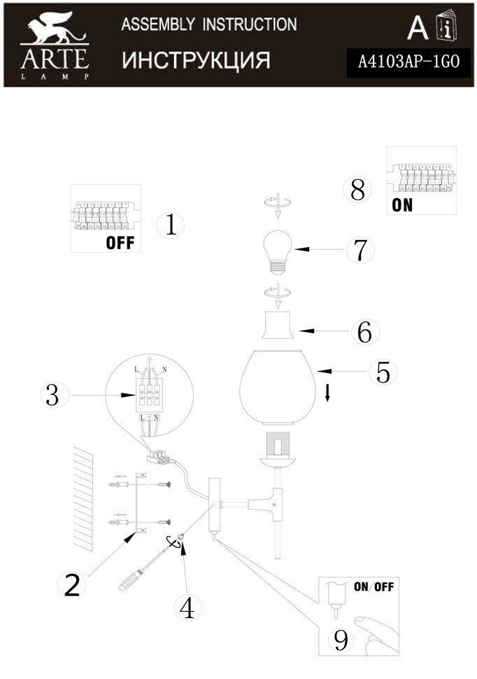 | Комплектация | бра Arte Lamp A4103AP-1GO |