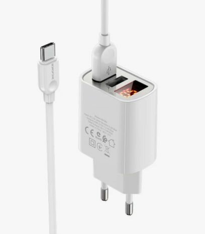 Borofone BA58A Mighty 2xUSB 2.4A + кабель USB Type-C 1.0m White