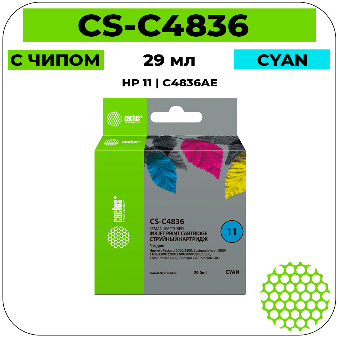 Картридж струйный Cactus CS-C4836 №11 голубой (29мл) для HP BIJ 1000/1100/1200/2200/2300/2600/2800