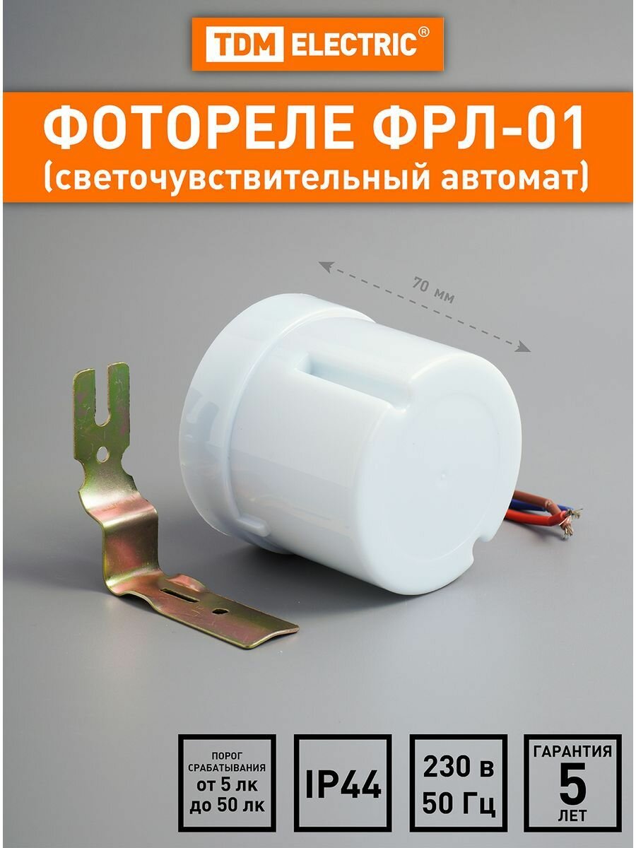 Фотореле TDM ELECTRIC ФРЛ-03, белый, термопласт, IP44, выносной датчик