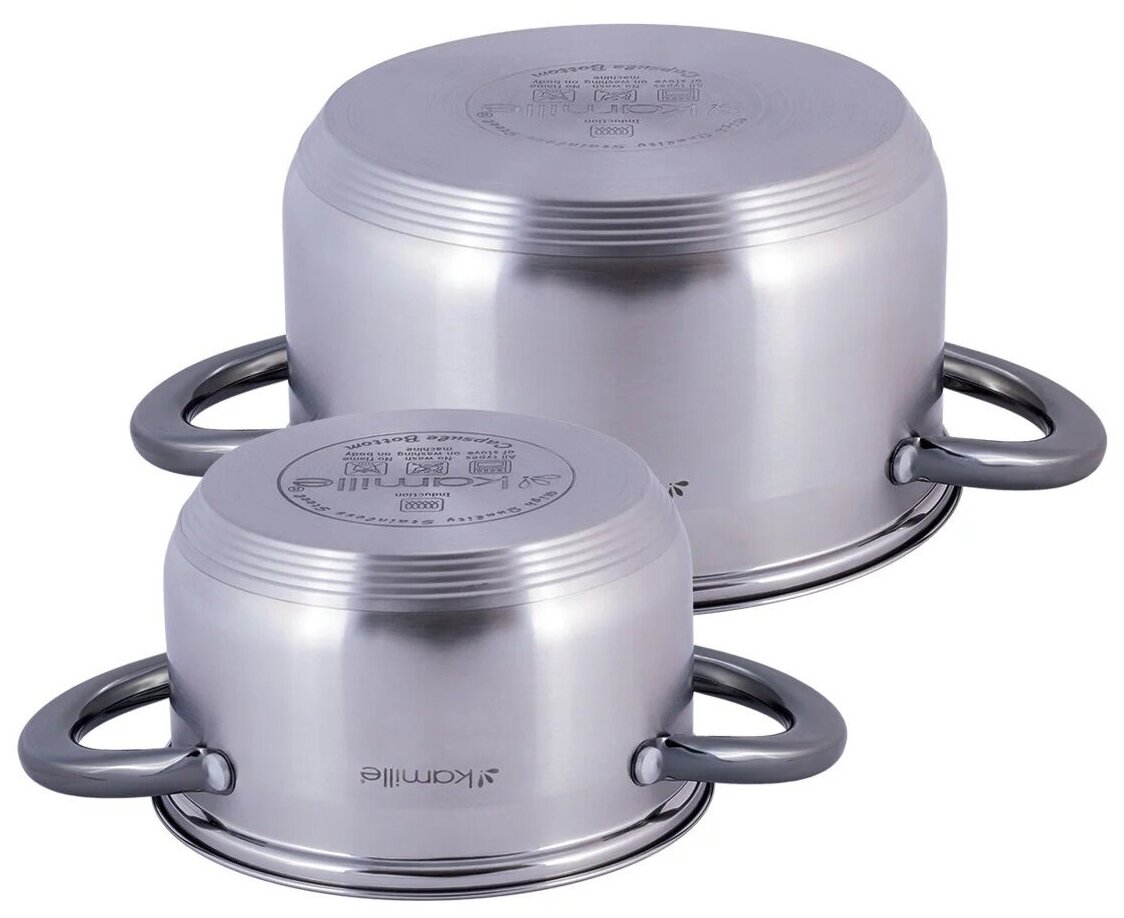 Купить Набор кастрюль 4 предмета (1,5л, 3л; полые черные ручки) из нержавеющей стали KAMILLE KM4925