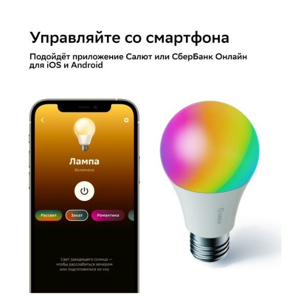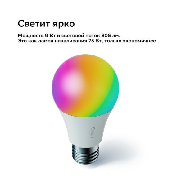 Умная лампочка Sber A60 SBDV-00115, E27 интересное: