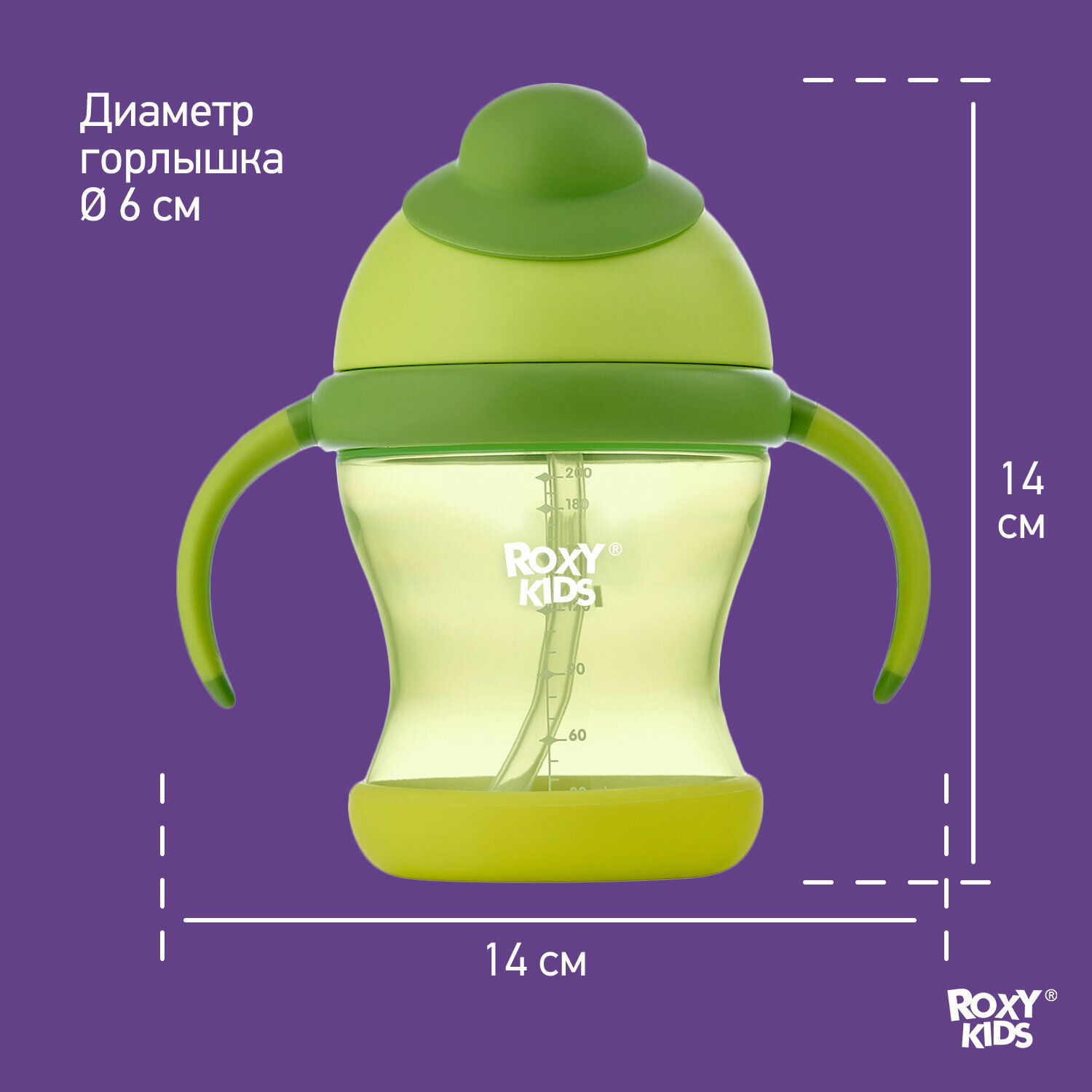 Roxy-kids Поильник-непроливайка с трубочкой, 200 мл., цвет лайм