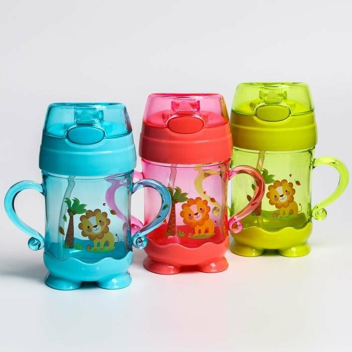 Купить Поильник с трубочкой 280 мл, с ручками, цвета микс (комплект из 3 шт)