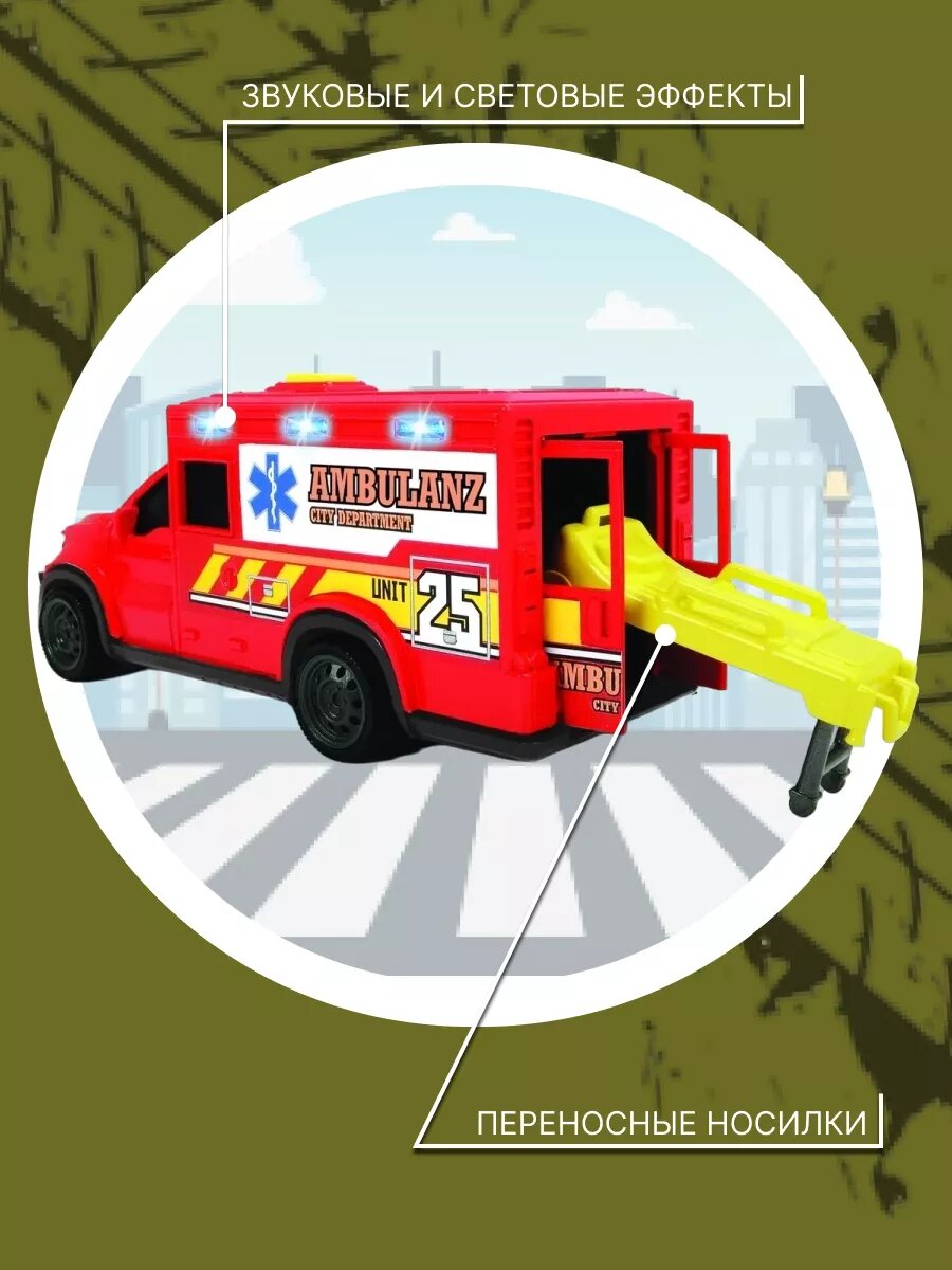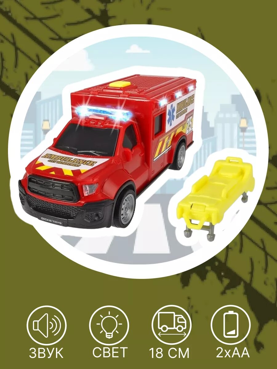 Dickie Дикки Машинка скорой помощи с носилками 18 см свет, звук 3713013 с 3 лет интересное: