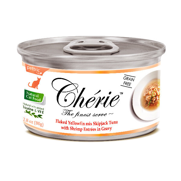 Консервы для кошек Pettric Cherie тунец С креветкой В подливе Flaked Yellowfin mix Skipjack Tuna with Shrimp Entrees in Gravy 80 гр