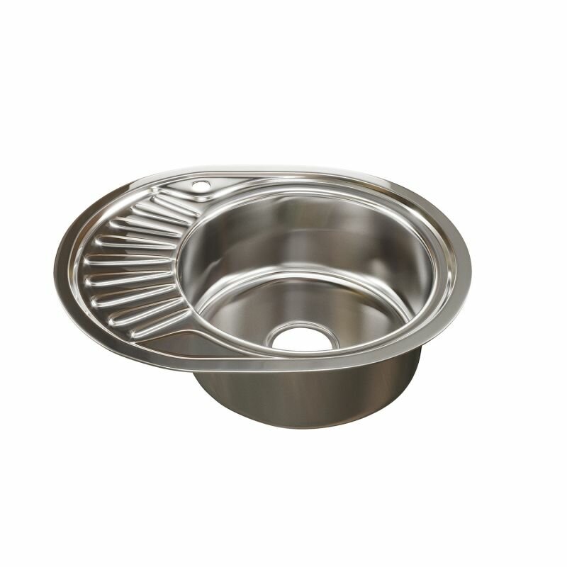 Врезная кухонная мойка Mixline из нержавеющей стали рифленая овальная 45х57 см выпуск 3 1/2 глубина 18 см, крыло левое
