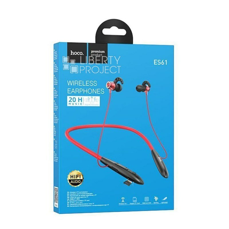 Наушники ES61, HOCO, беспроводные спортивные вакуумные наушники с обручем, красные