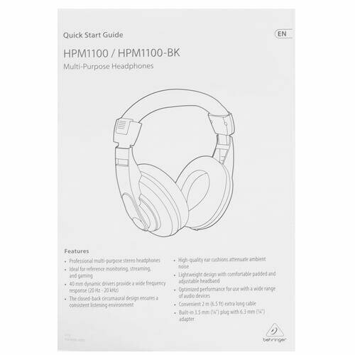 Behringer HPM1100-BK Закрытые динамические наушники, драйвер 40 мм, 20-20000Гц, 32Ом, 96 дБ, кабель 2м, переходник. Черные
