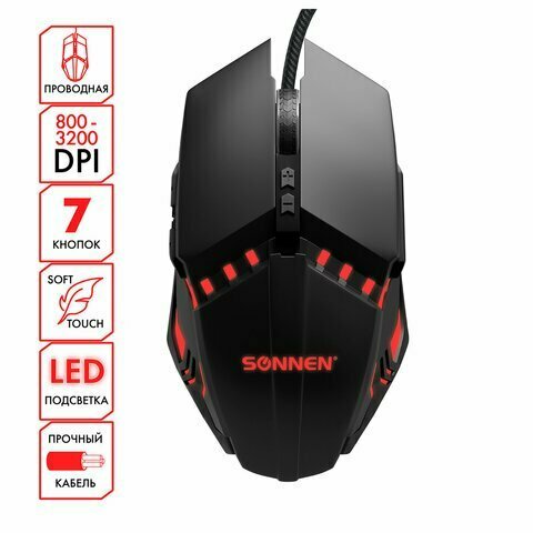 Мышь проводная SONNEN Z5, металл/пластик, 7 кнопок, 800-3200 dpi, RGB-подсветка, черная, 513521 интересное:
