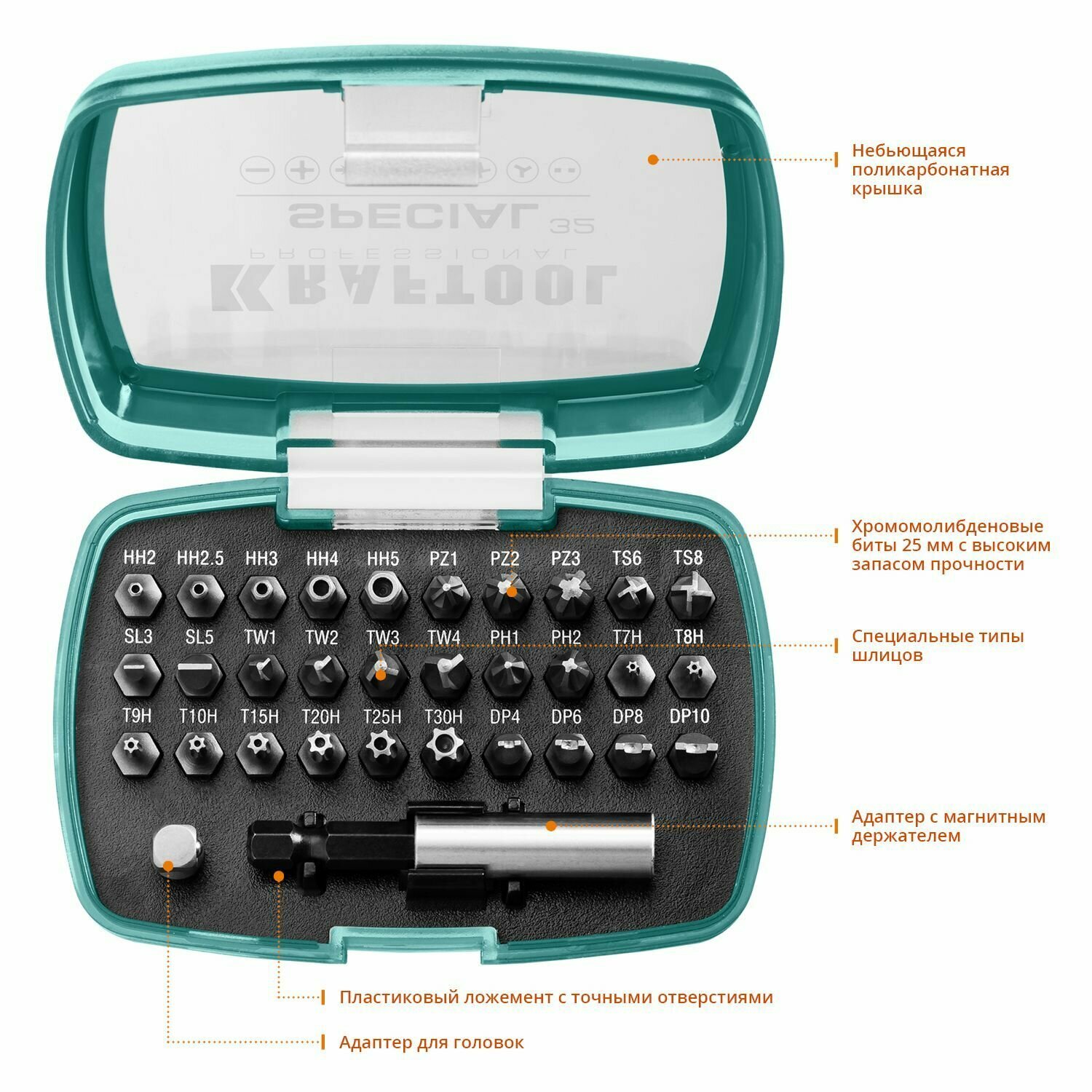 KRAFTOOL Набор специальных бит SPECIAL-32, 32 предмета, Cr-Mo, KRAFTOOL, ( 2610-H32 )