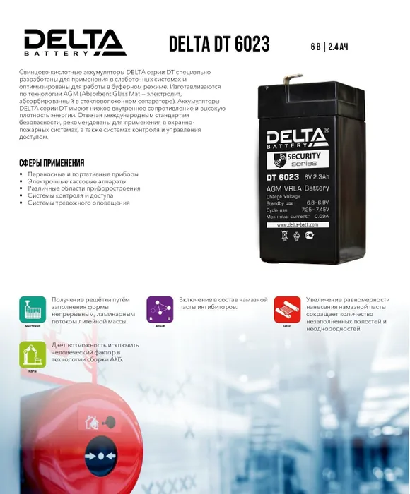 Батарея Delta DT 6023 6В, 2.3Ач интересное: