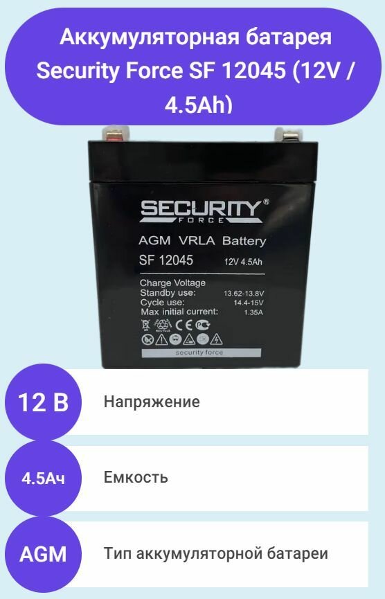 Аккумуляторная батарея Security Force 4,5 Ач 12В (технология AGM)