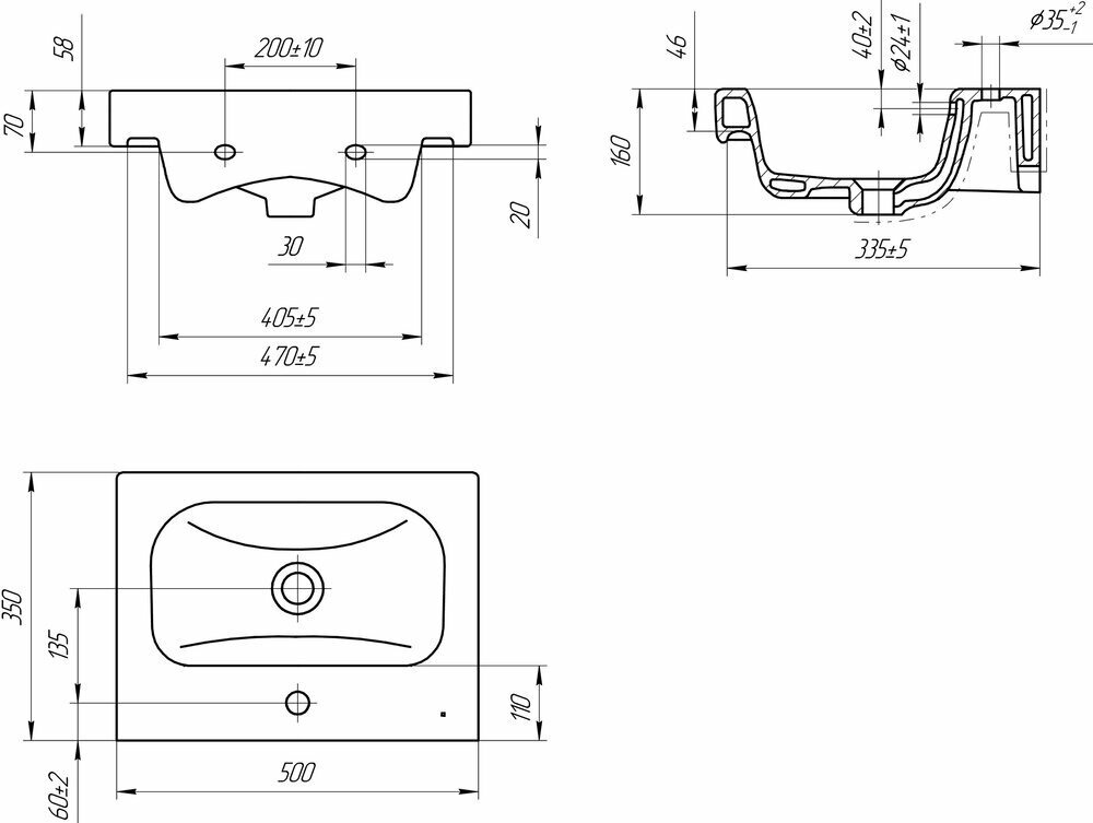Тумба под раковину AQUANET Нота 50 (Moduo Slim) Белый Размеры: Высота 400мм Глубина 330мм Ширина 470мм