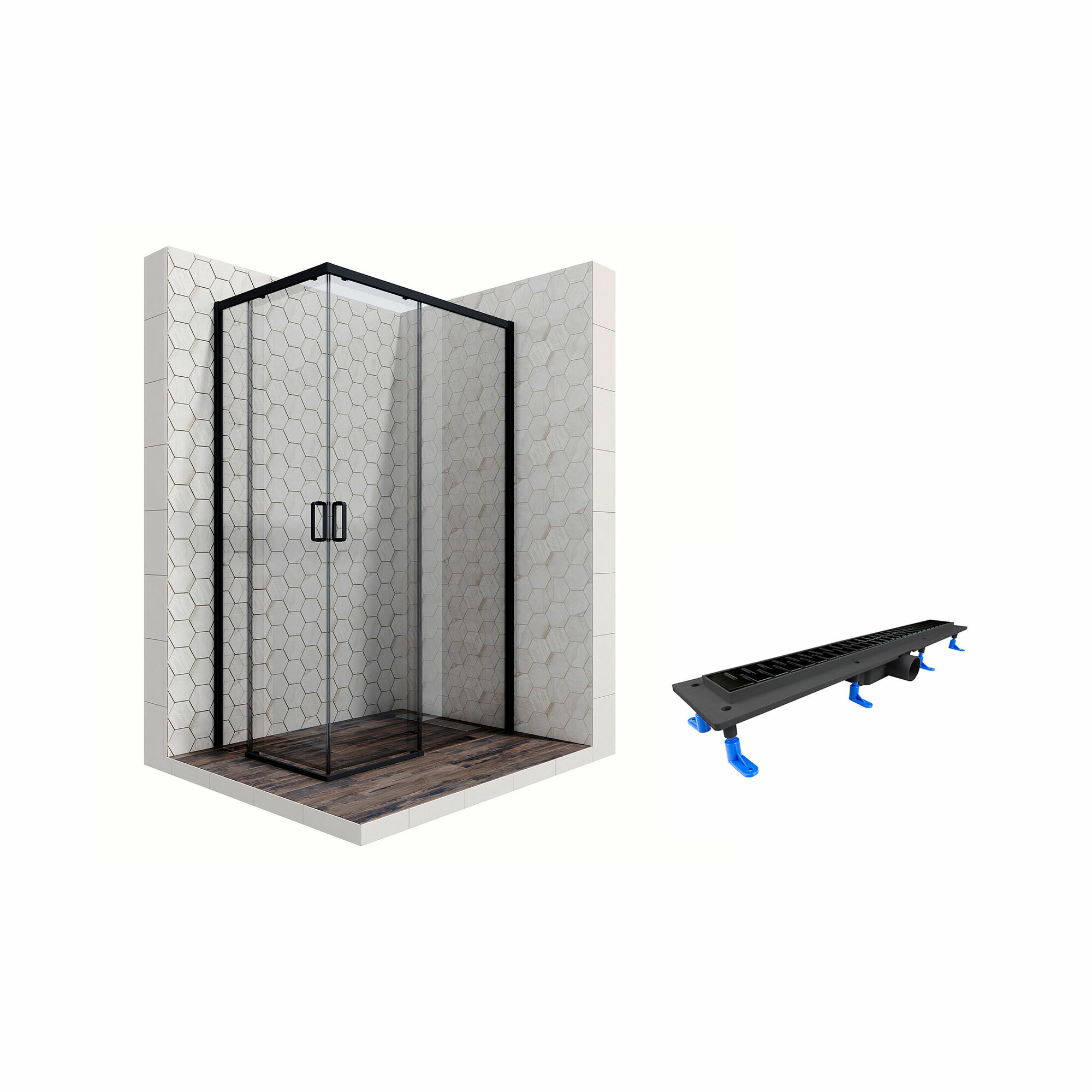Комплект прямоугольного душевого ограждения с линейным трапом Ambassador Queen Black 11011205R-ST10, с EasyClean, 120 х 80 см