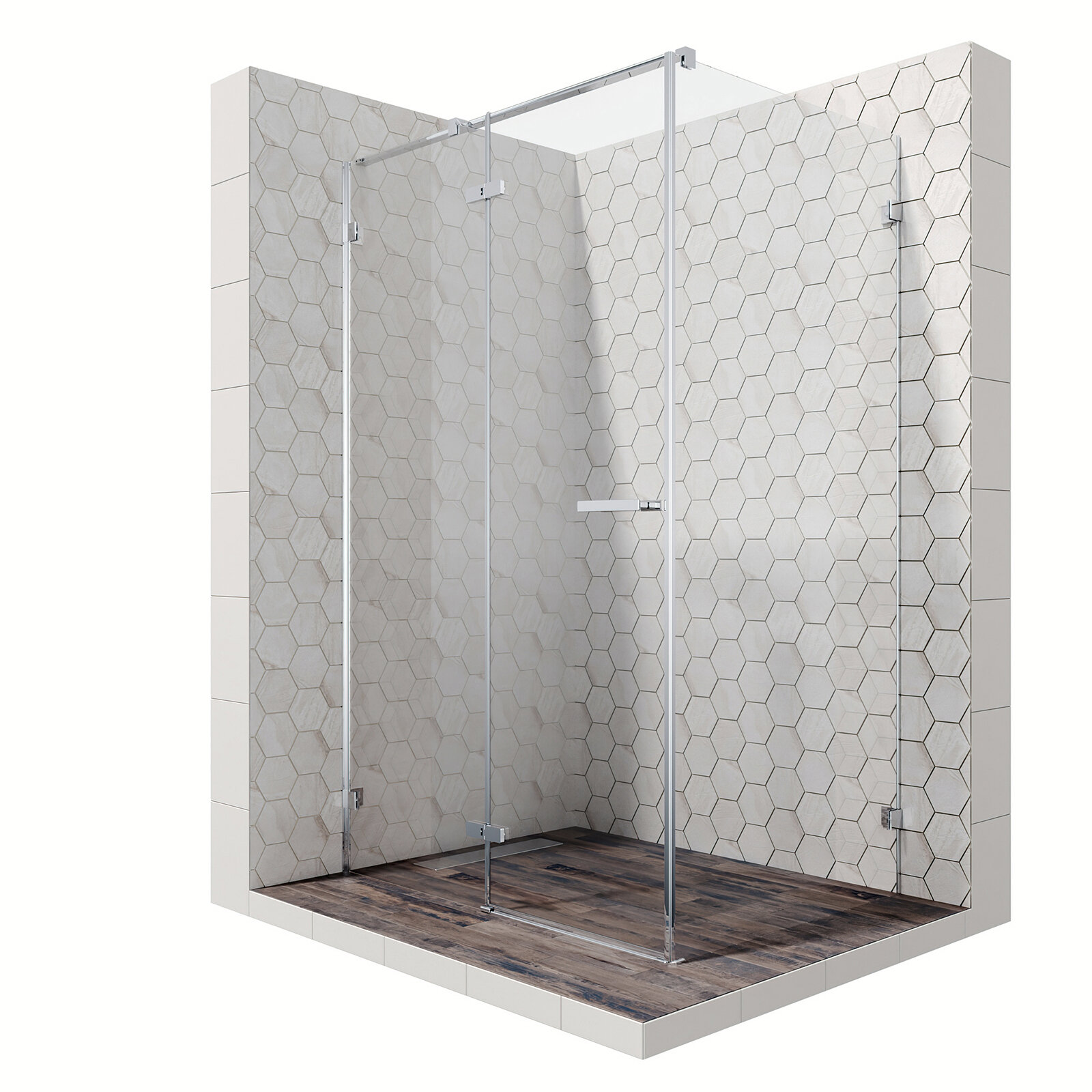 Душевой уголок 120х90 с трапом и распашной дверью Ambassador Abner 10011104R-ST3: правостороннее душевое ограждение из стекла 6 мм, профиль хром