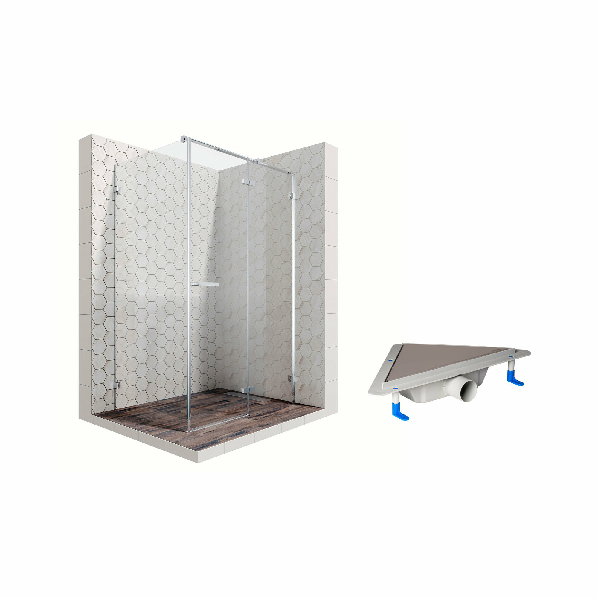 Комплект прямоугольного душевого ограждения с угловым трапом Ambassador Abner 10011103R-ST4, с EasyClean, 120 х 80 см