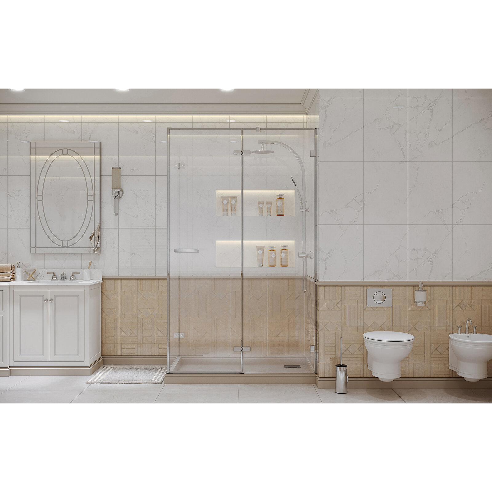 Купить Душевой уголок 120х90 с трапом и распашной дверью Ambassador Abner 10011104R-ST7: правостороннее душевое ограждение из стекла 6 мм, профиль хром