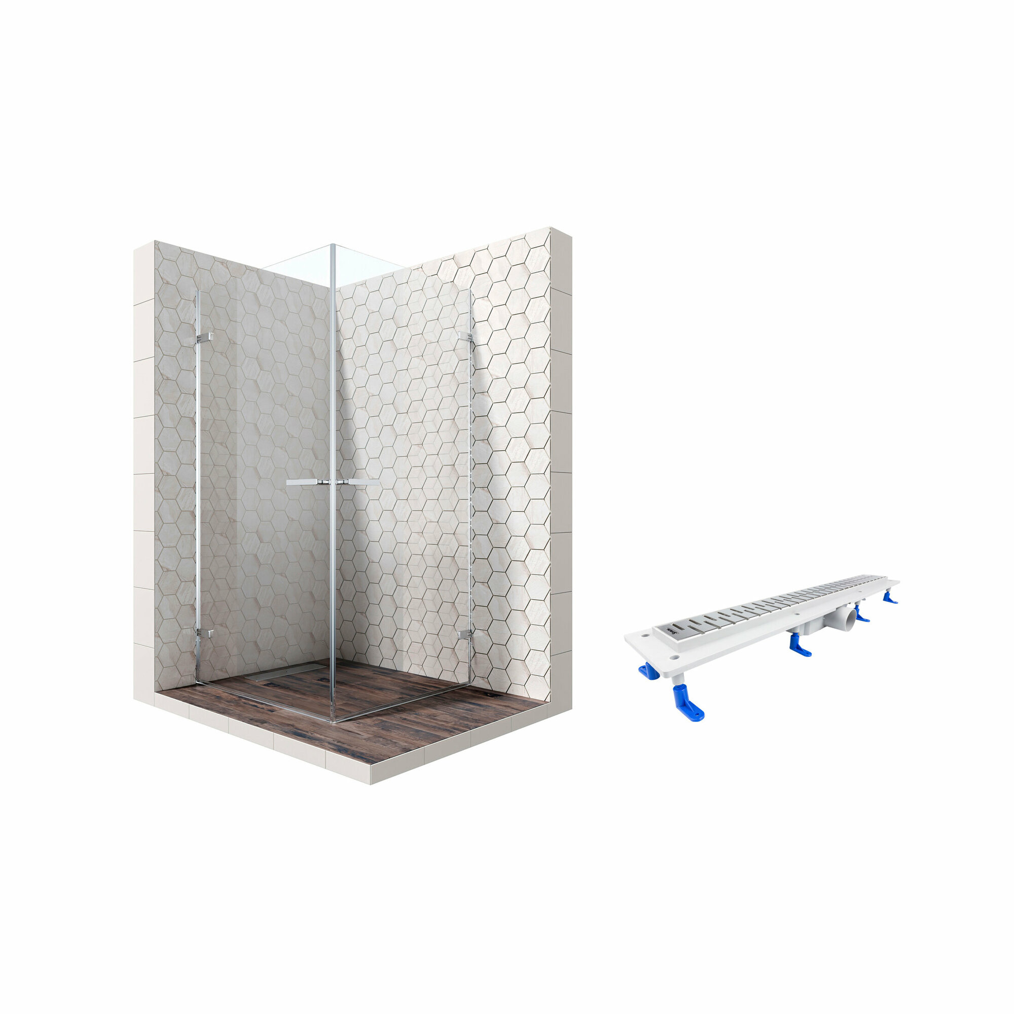 Комплект квадратного душевого ограждения с линейным трапом Ambassador Abner 10011105-ST5, с EasyClean, 90 х 90 см