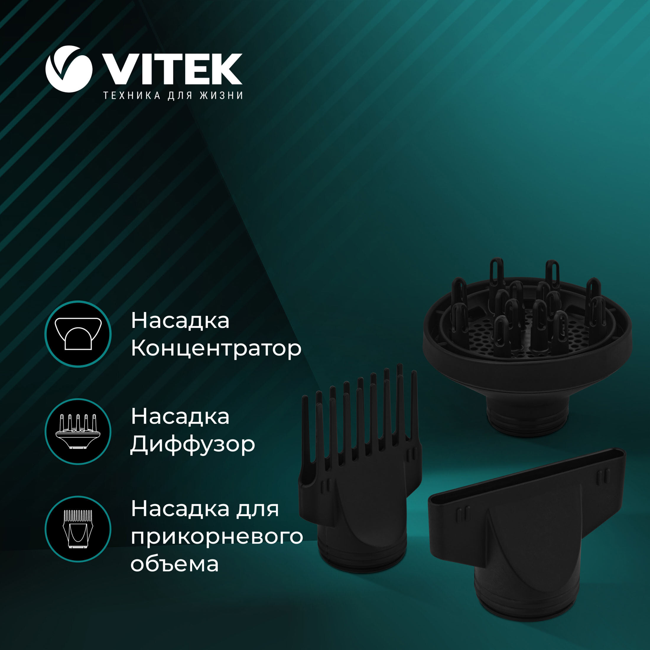 Фен VITEK VT-2378 Aquamarine, черный/аквамарин