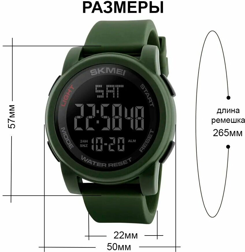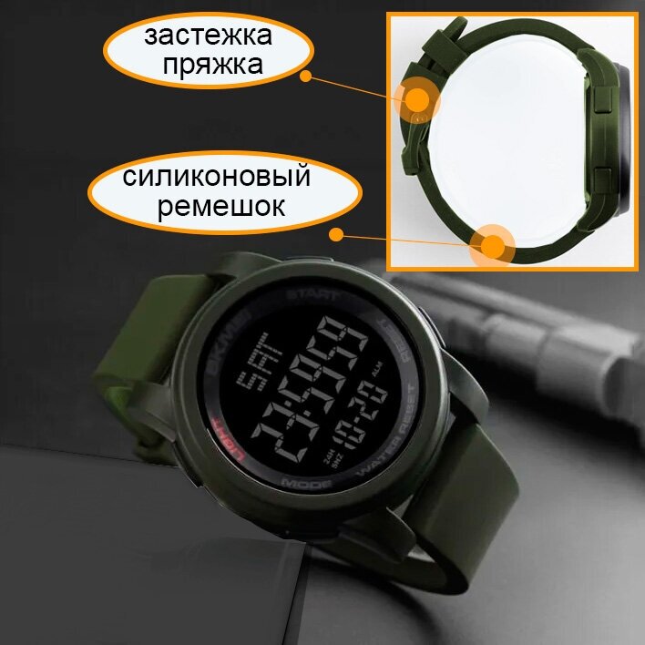Часы наручные спортивные мужские SKMEI 1257 кварцевые, электронные, круглые, с подсветкой и таймером, цвет army green интересное: