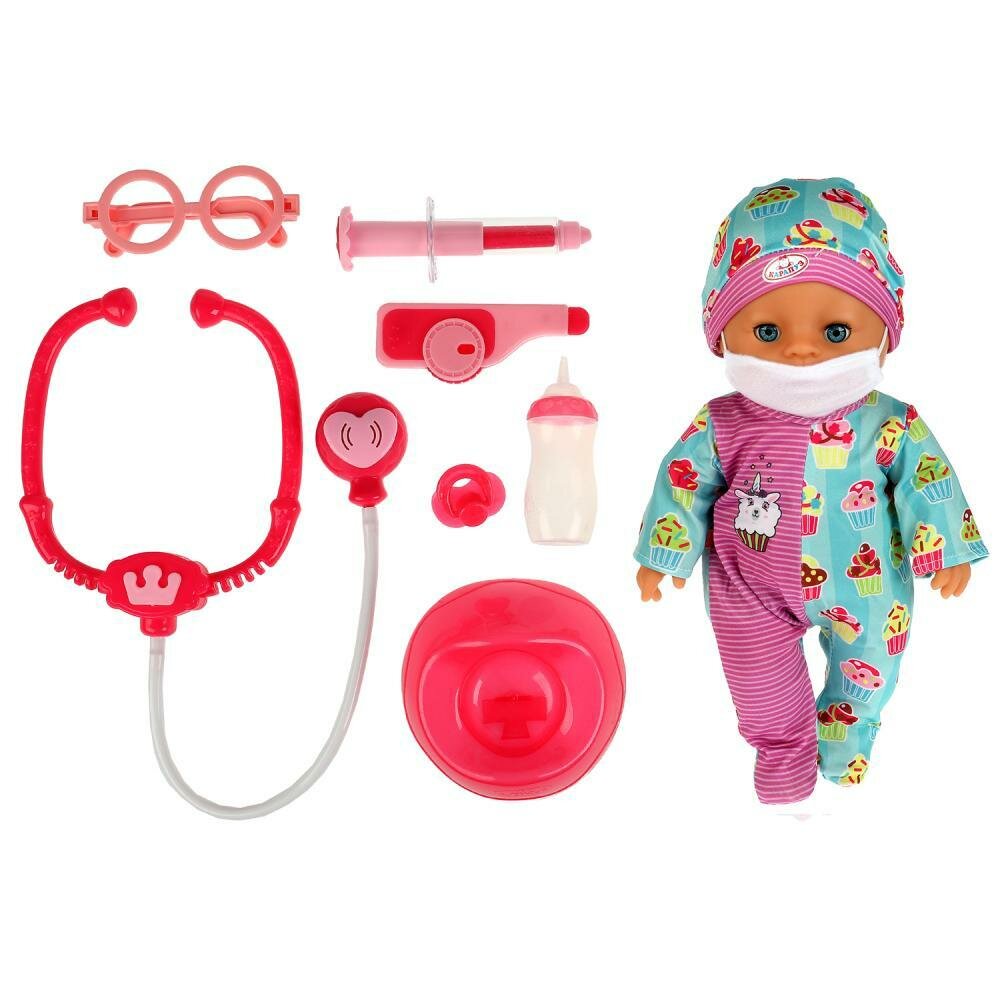 Пупс Карапуз, озвученный Чуковский К. Алиса 30см, доктор, пьет, писает, закрывает глаза, 7 аксессуаров