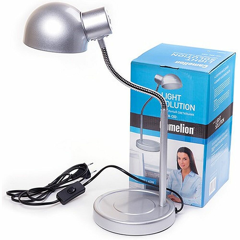 Лампа офисная Camelion Light Solution KD-306 C03, E27, 40 Вт, серебристый