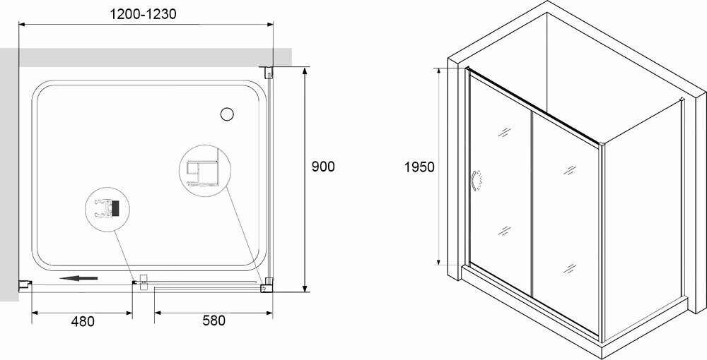 Душевой уголок RGW PA-76 (PA-016 + Z-050-2) 120х90 см прозрачное