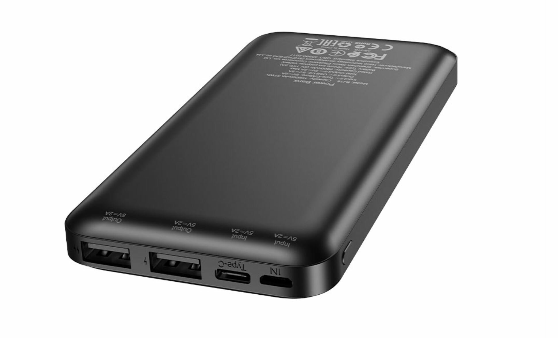 Внешний аккумулятор Borofone BJ16 Cube, чёрный (10000mAh, 2xUSB, 2A)