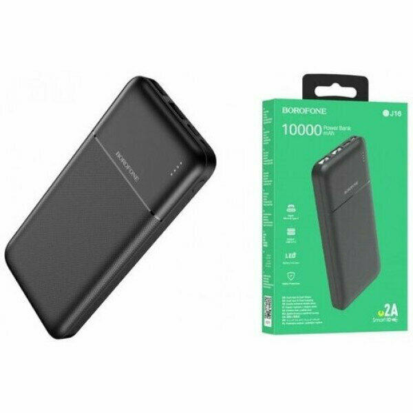 Купить Powerbank Borofone BJ16 10000mAh 2USB 2A с индикатором черный