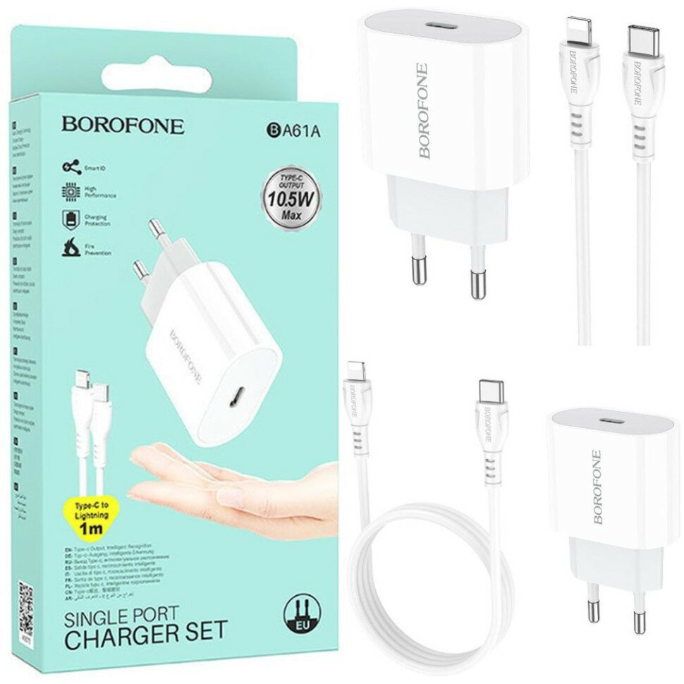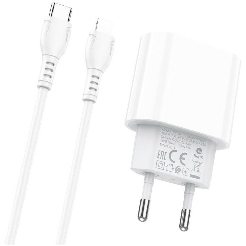 Сетевое зарядное устройство Borofone Ba61a, Type-C, 2.1 А, кабель Type-C - Lightning, белый Borofone